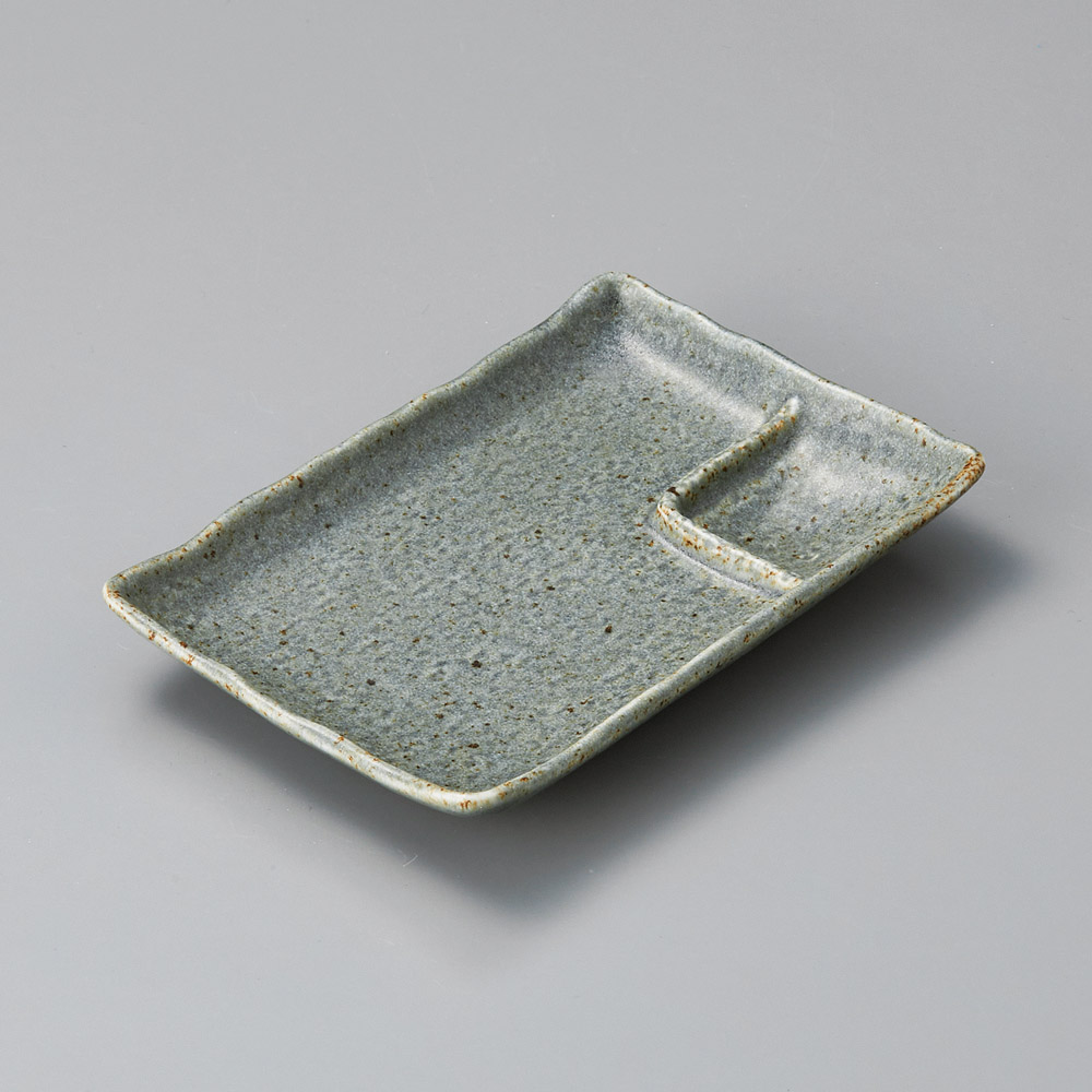 黒陶石目四つ足一つ穴長角皿(千代口別売) (土物)