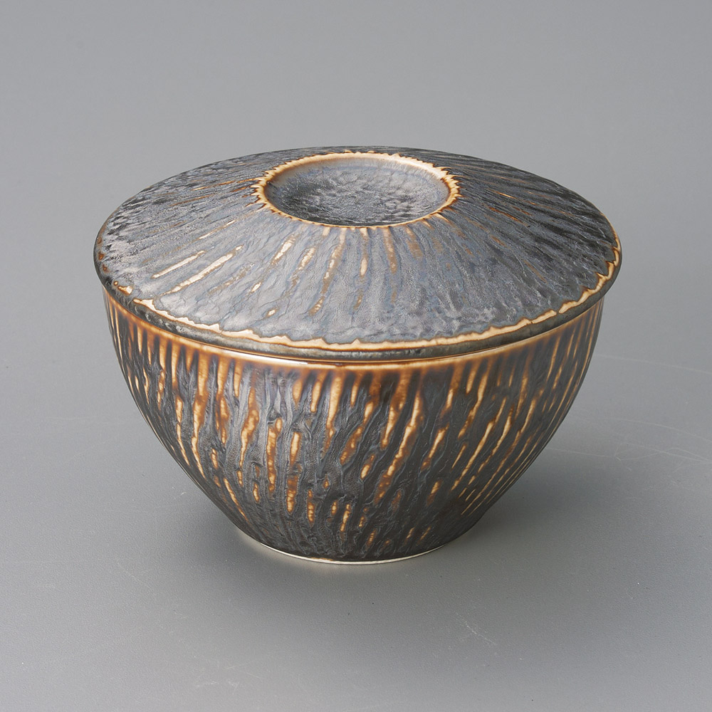 黒吹淵金流し笠型蓋物