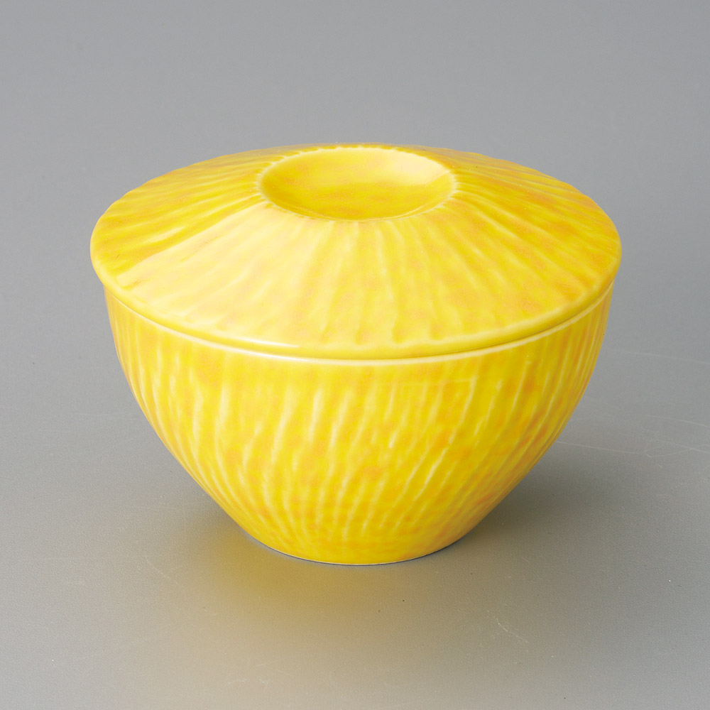 黄地金独楽筋夏目型蒸し碗 (強化)