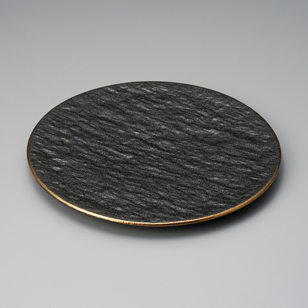 金線フラット岩肌25㎝丸皿(黒)
