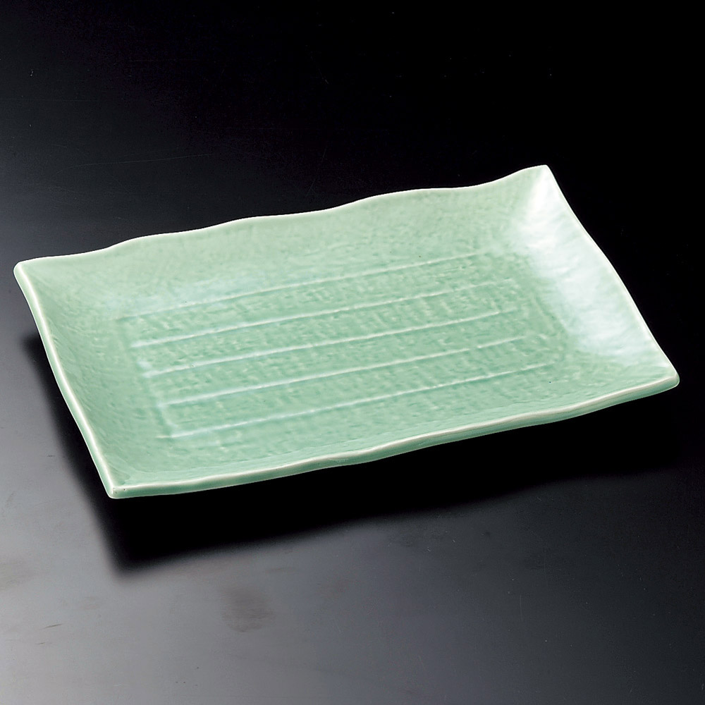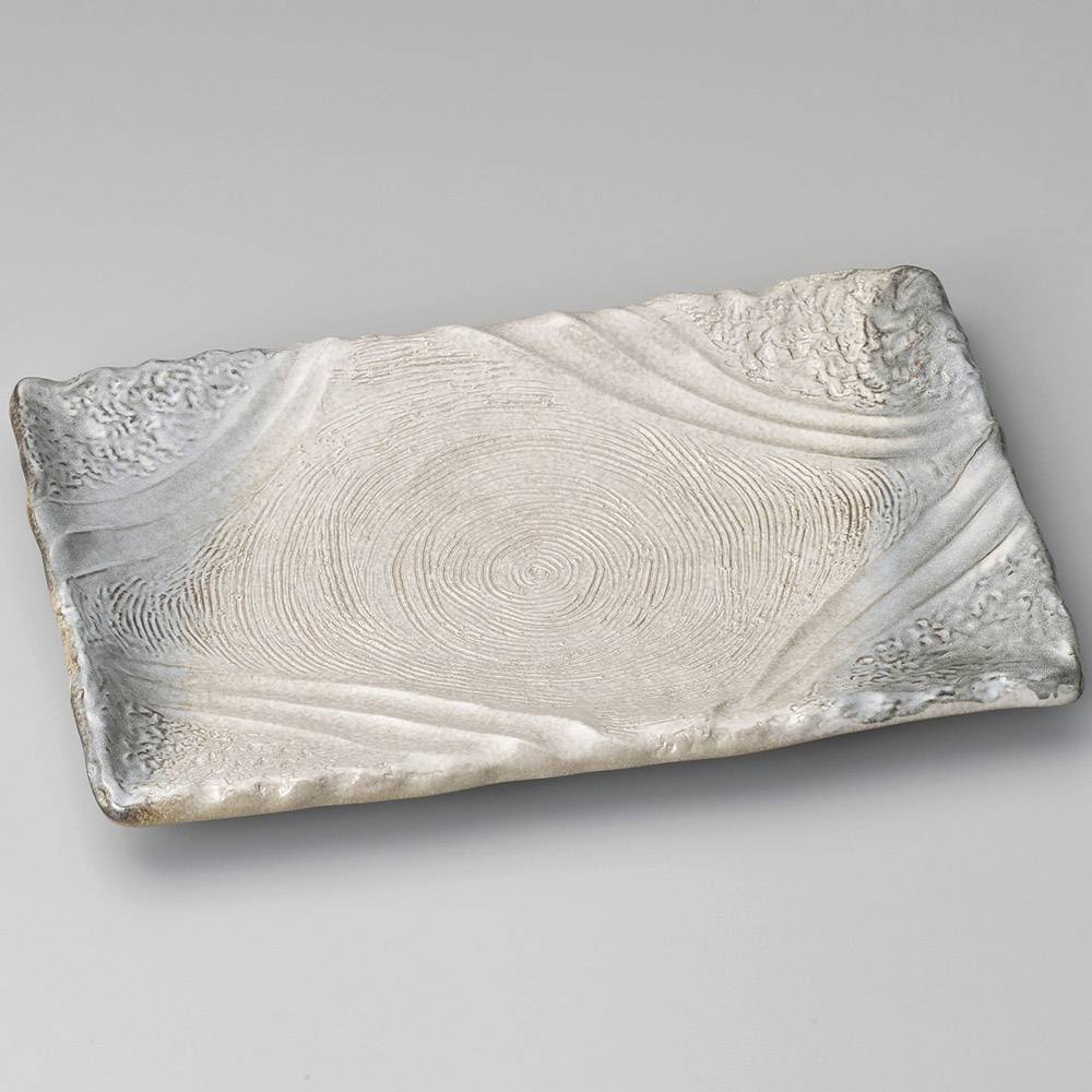 かすみ志野10号四ツ足長角皿(萬古焼)
