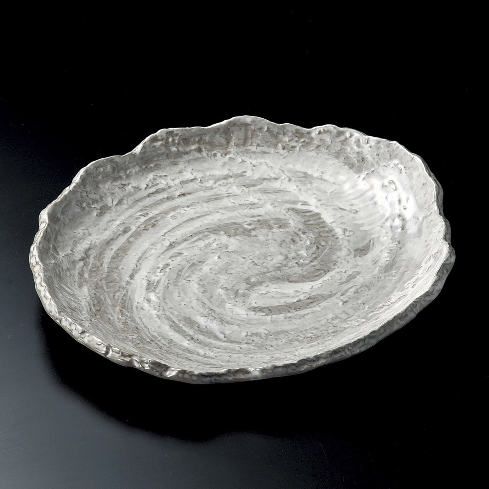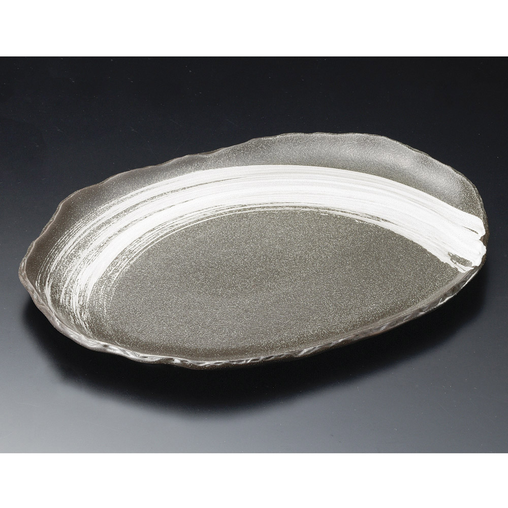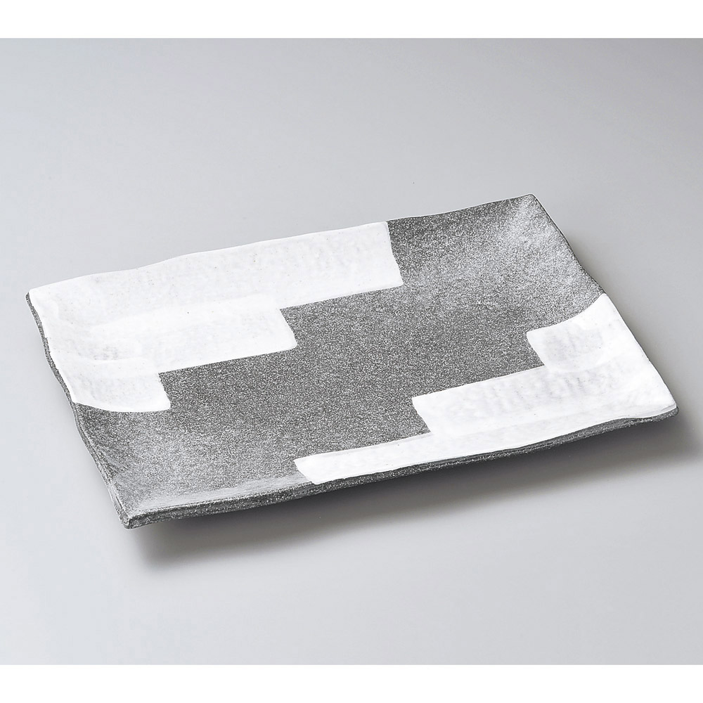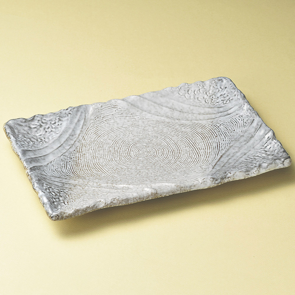 かすみ志野12号四ツ足長角皿(萬古焼)