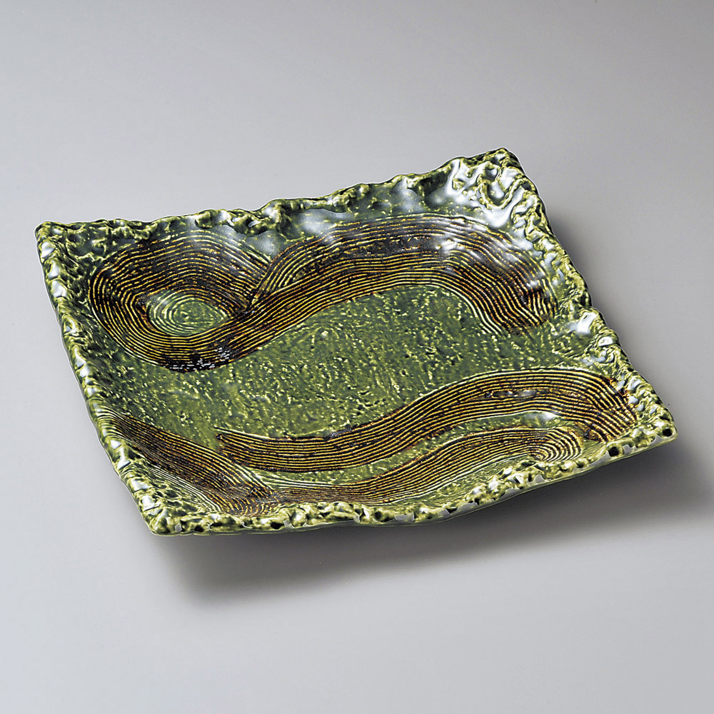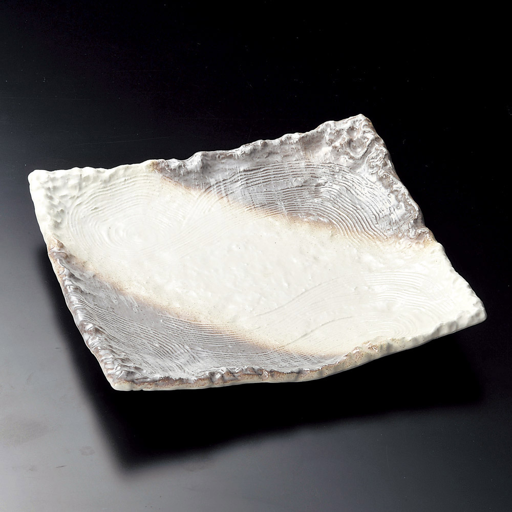 かすみ志野8号四ツ足正角皿(萬古焼)