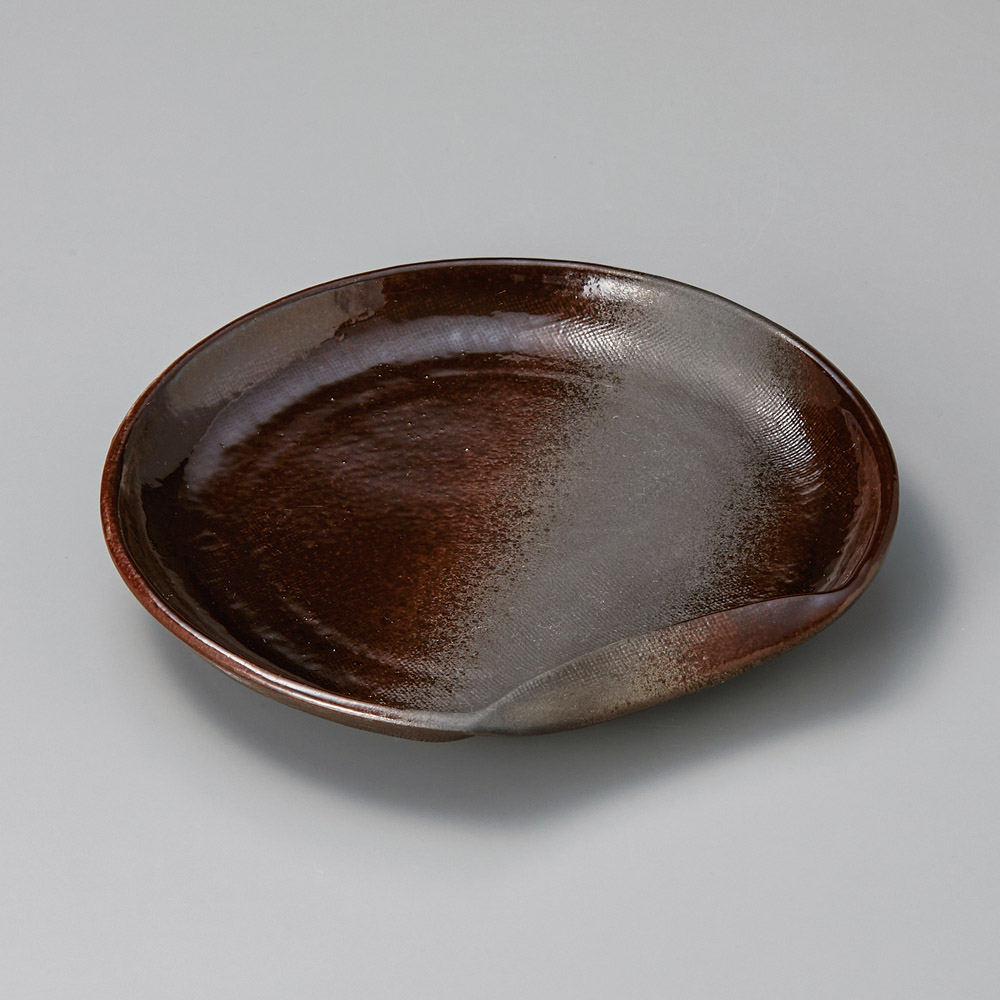 黒釉石目楕円盛皿 (土物)