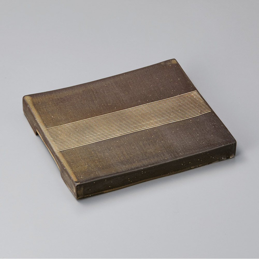 黒窯変クシ目6.8角皿(両面使用可)(信楽焼)