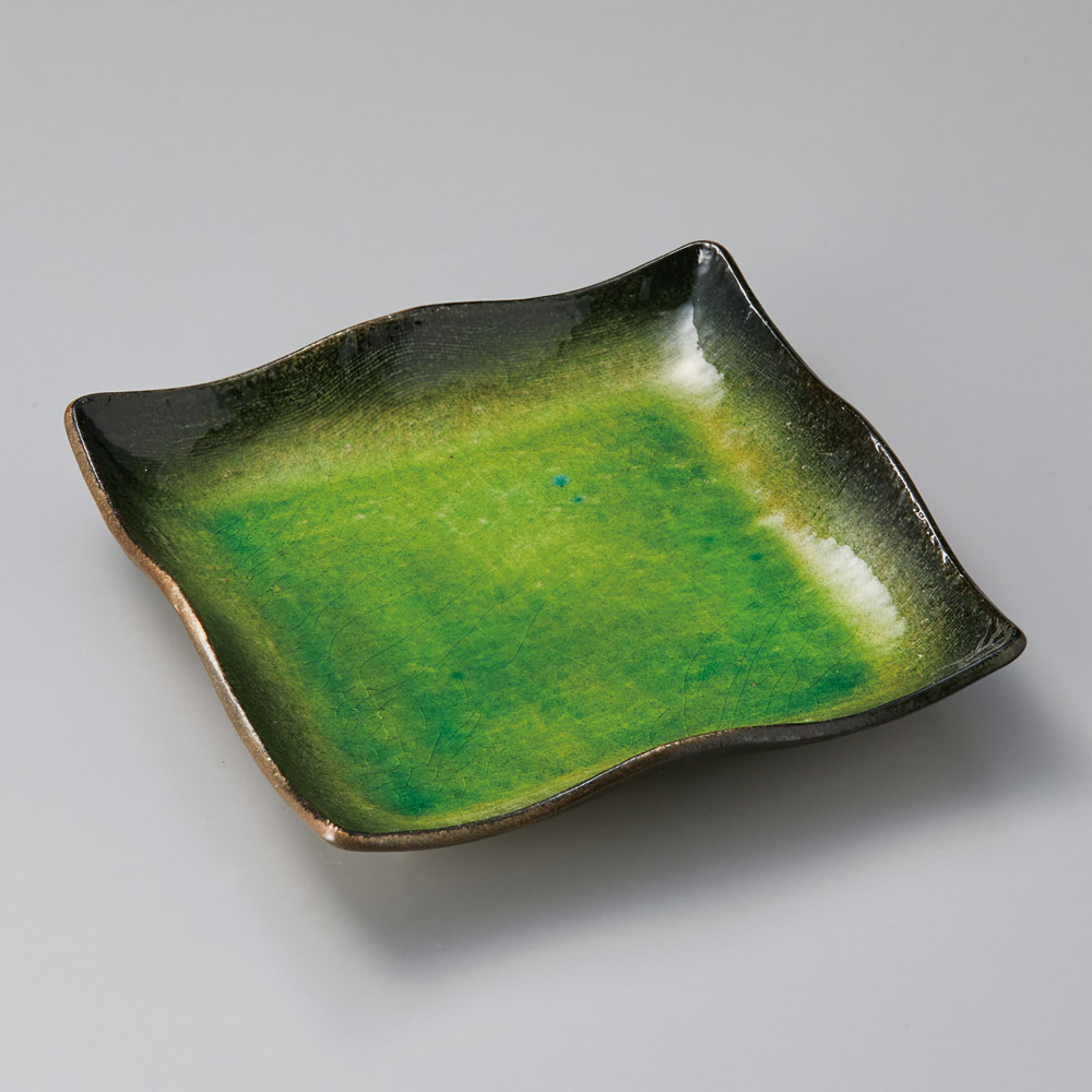 砂ビードロ8号正角皿(萬古焼) (土物)