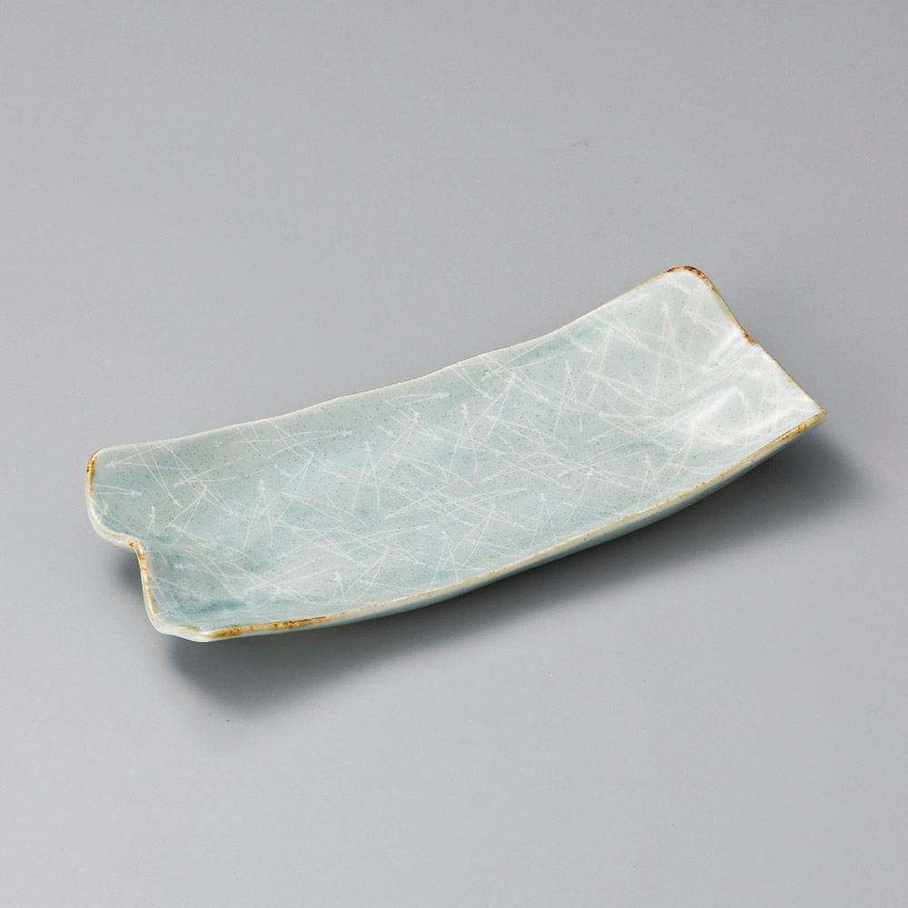 青磁しのぎ10.0長角皿 (強化)