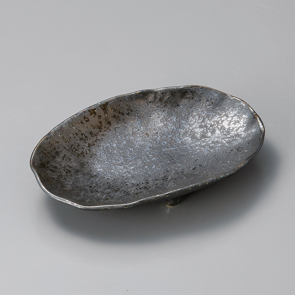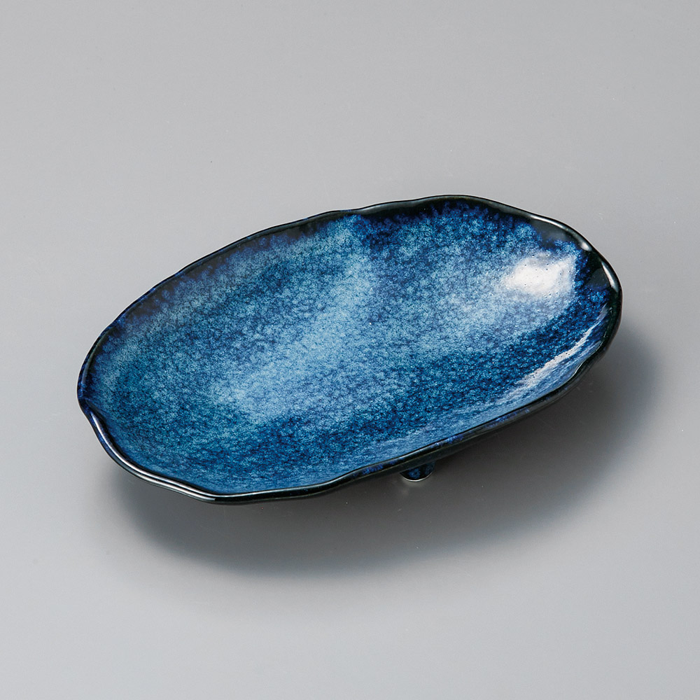 窯変紺三ツ足楕円皿