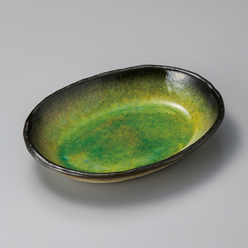 黄緑楕円皿(信楽焼)
