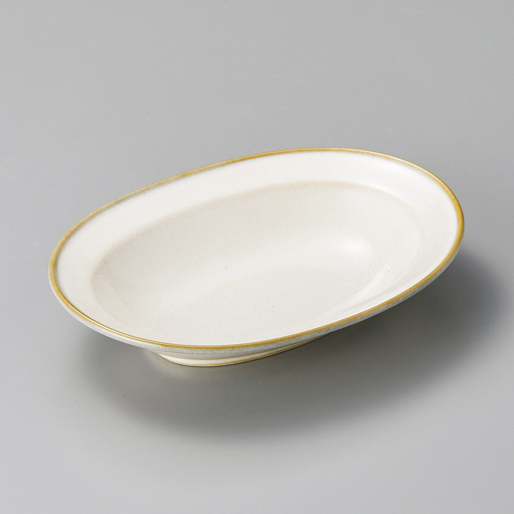 白釉楕円皿