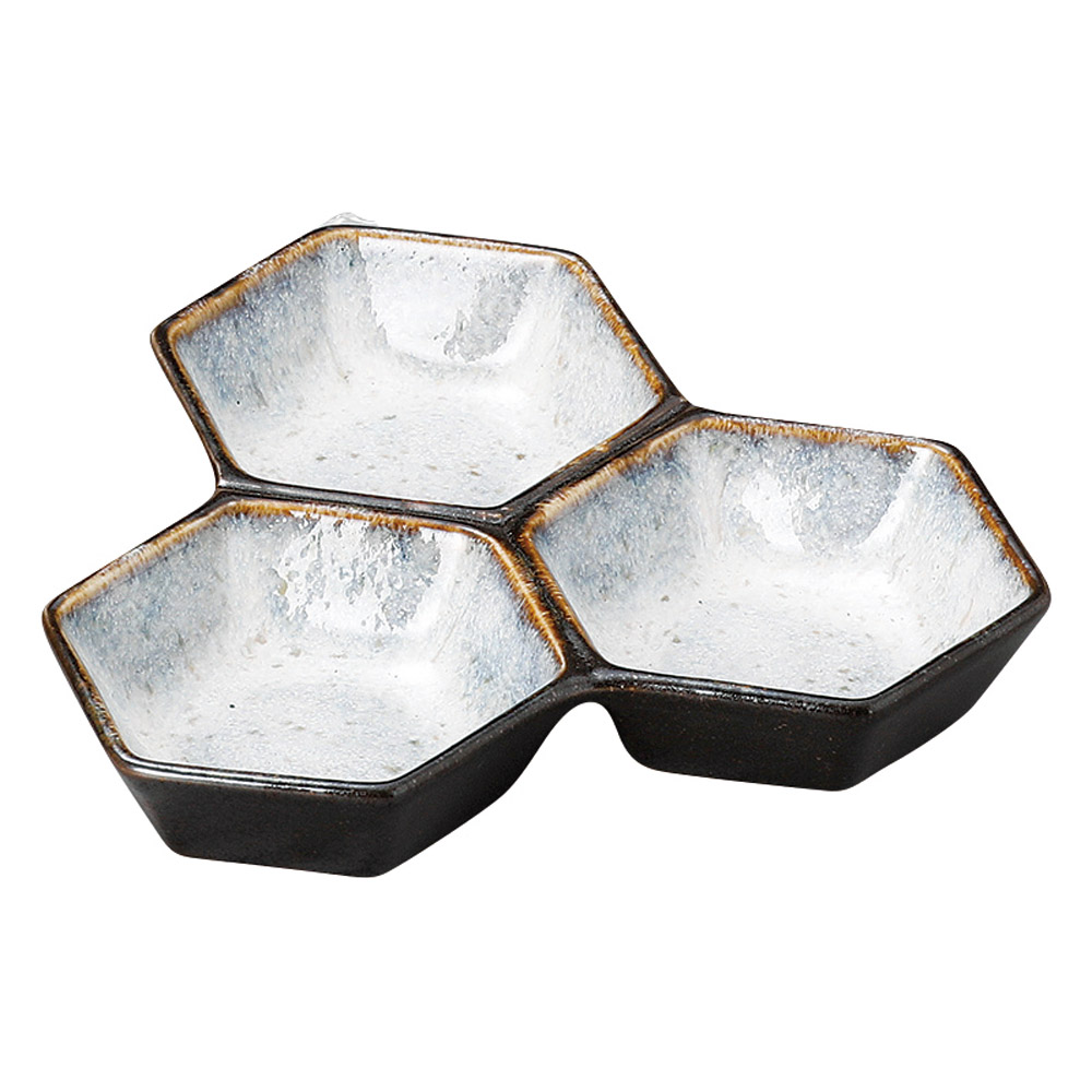 黒窯変三品薬味皿(信楽焼)
