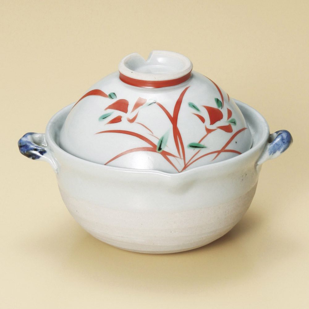 銀峯菊花アメご飯鍋2合炊(中蓋付)(萬古焼) (直火)