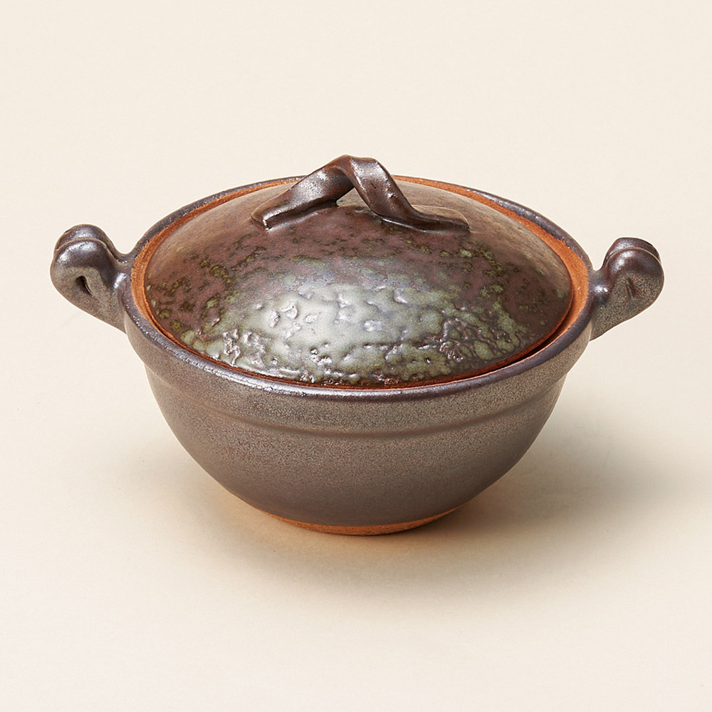 窯変鉄釉4号鍋(萬古焼) (直火)