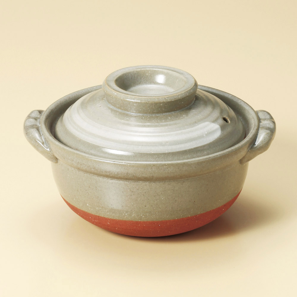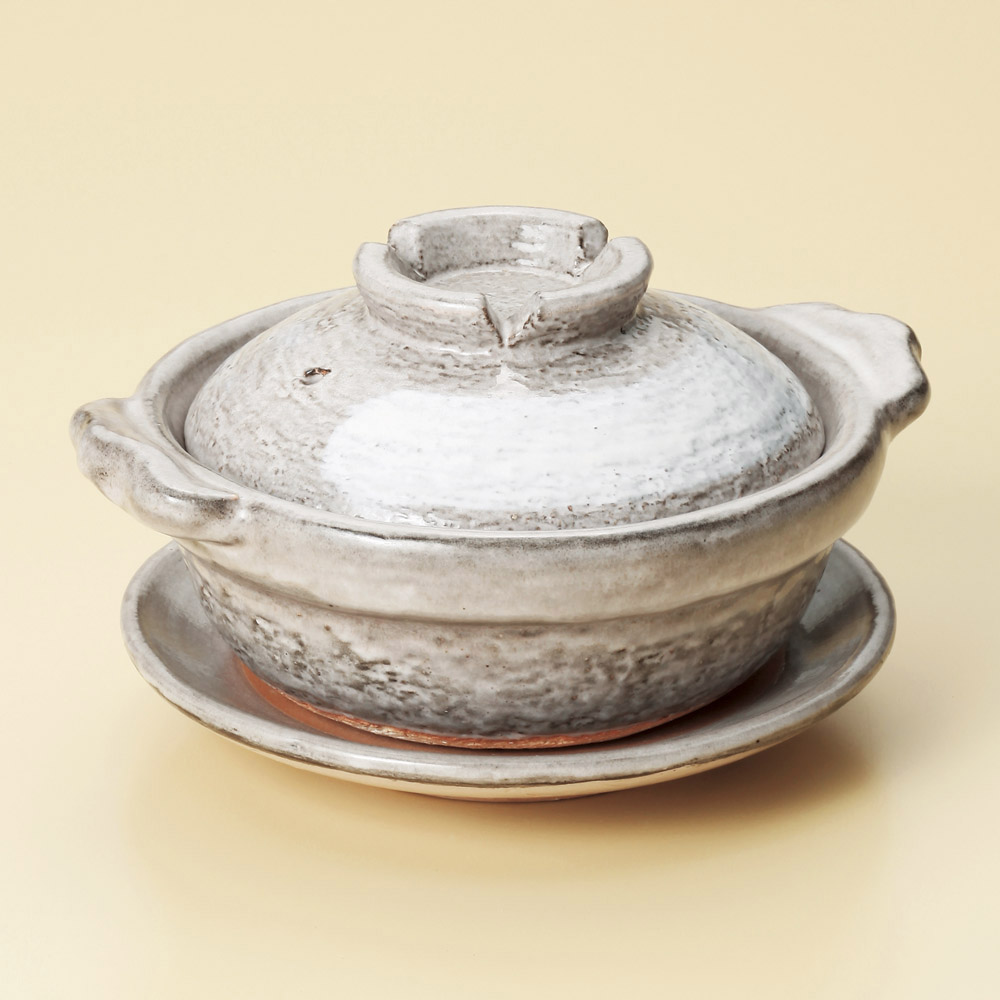 灰釉刷毛目5号鍋(受皿付)(信楽焼) (直火)