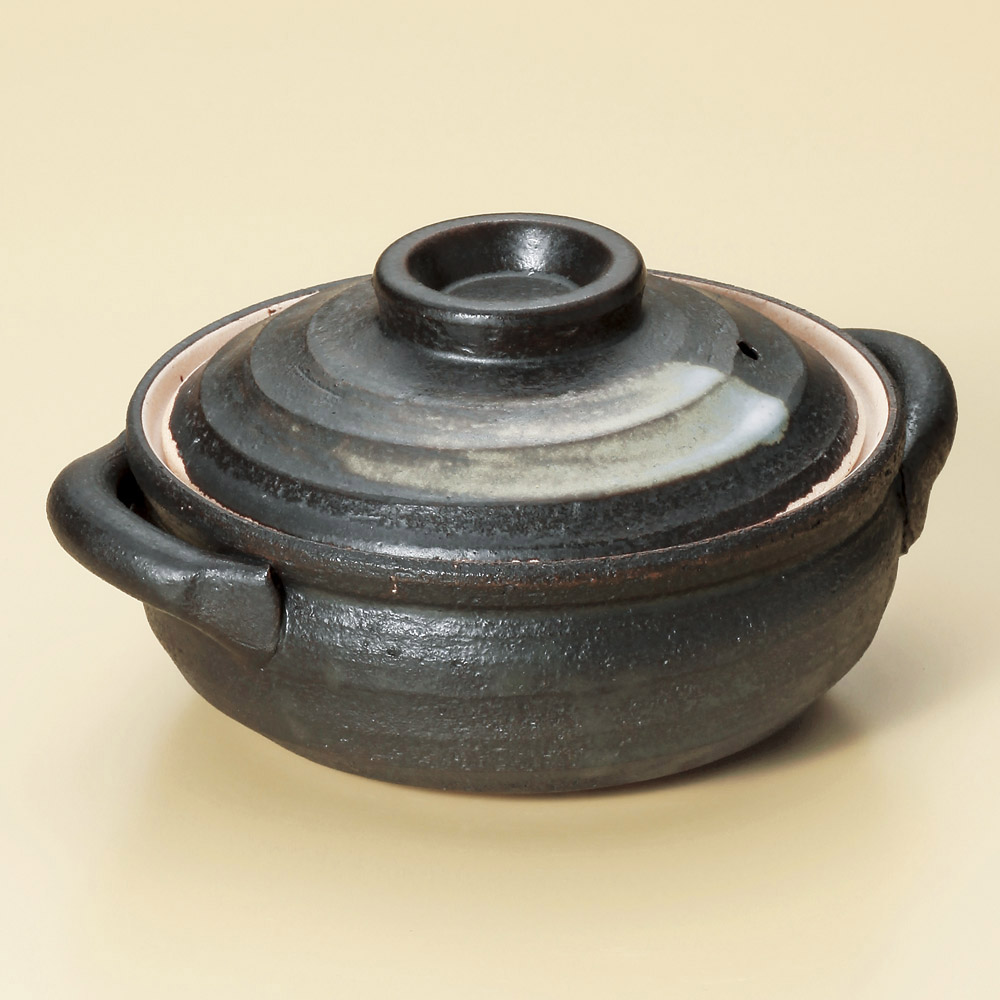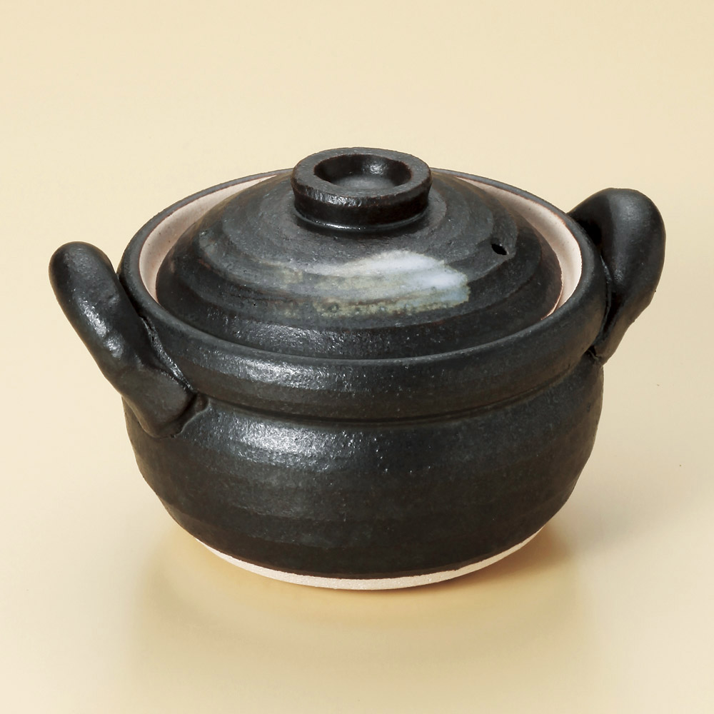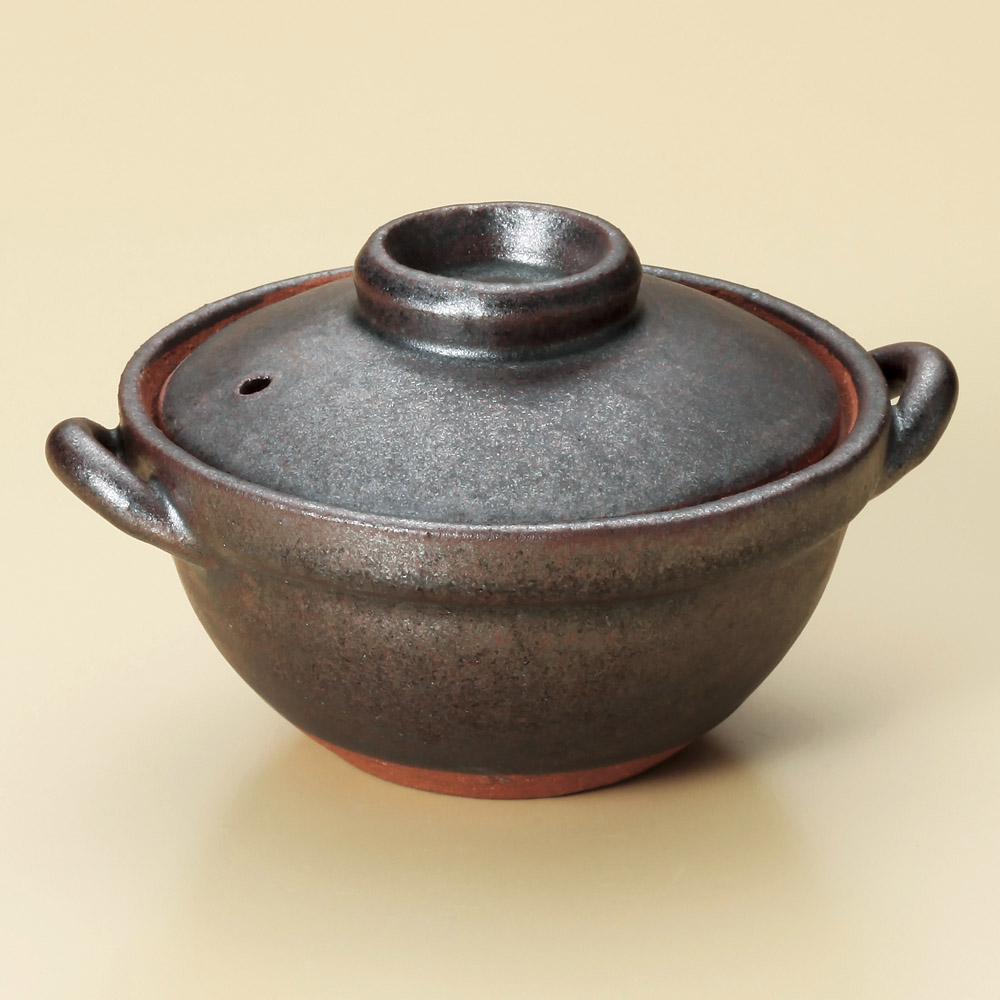 窯変鉄釉5号鍋(萬古焼) (直火)