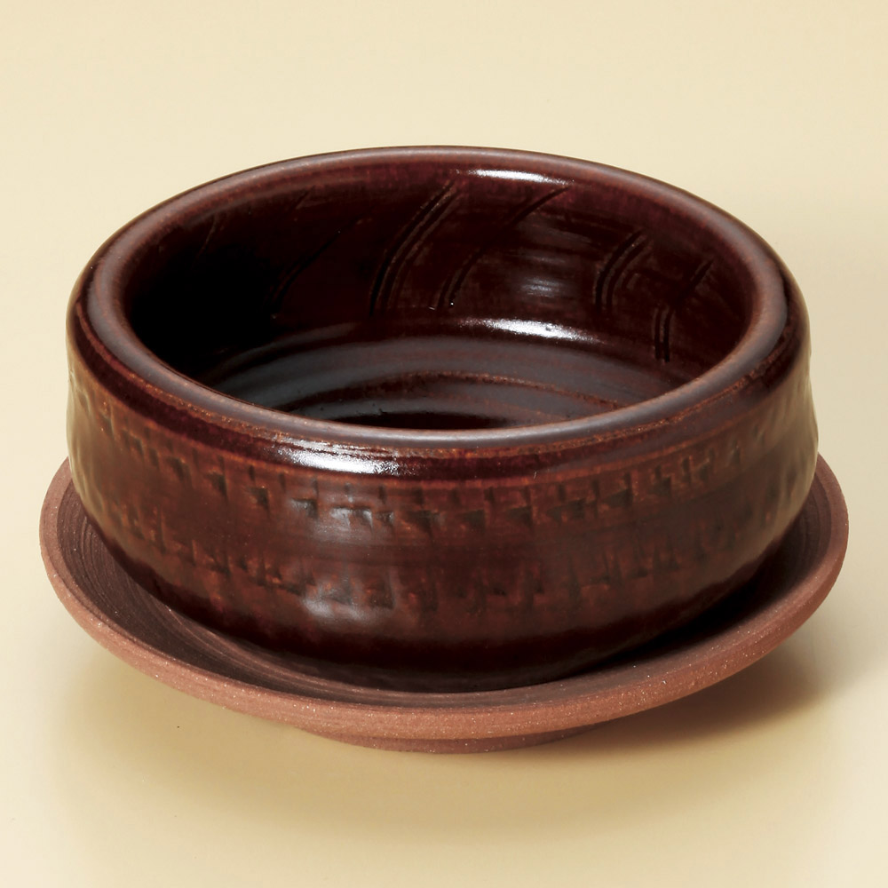 アメ釉5号鍋(受皿付)(信楽焼) (直火)