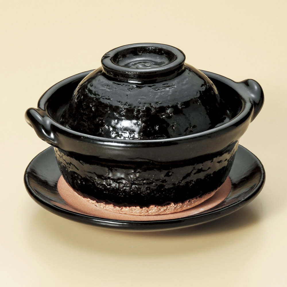 黒楽4.5号鍋(受皿付)(信楽焼) (直火)