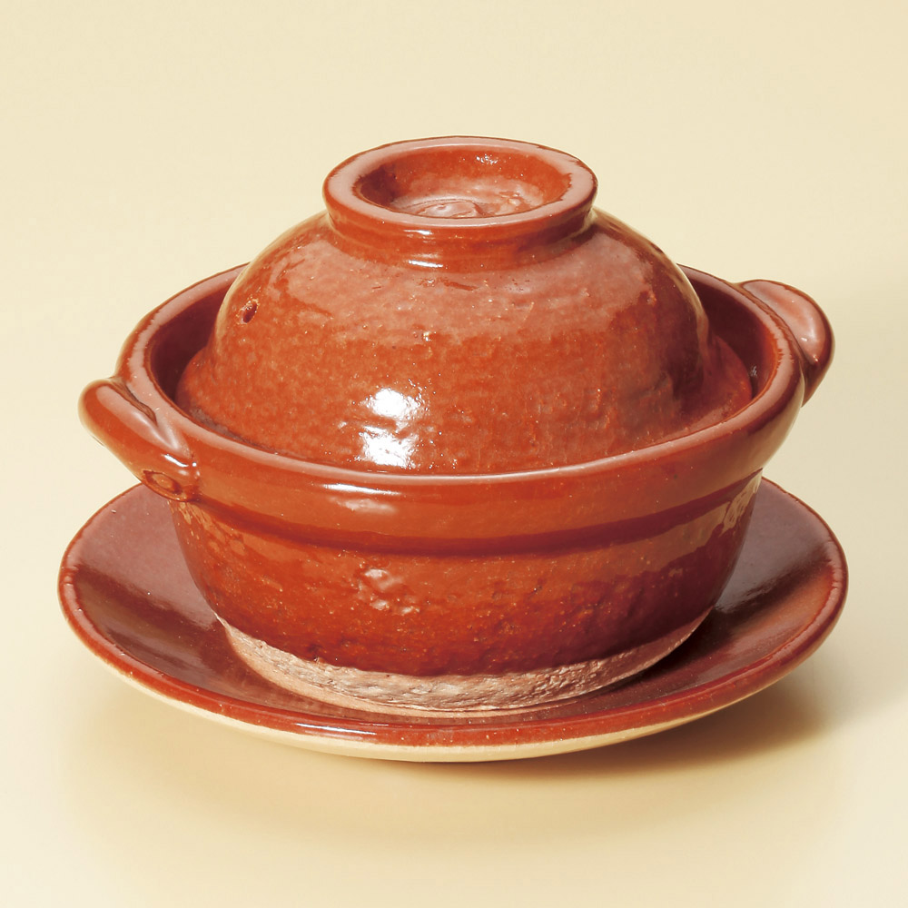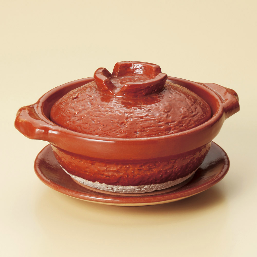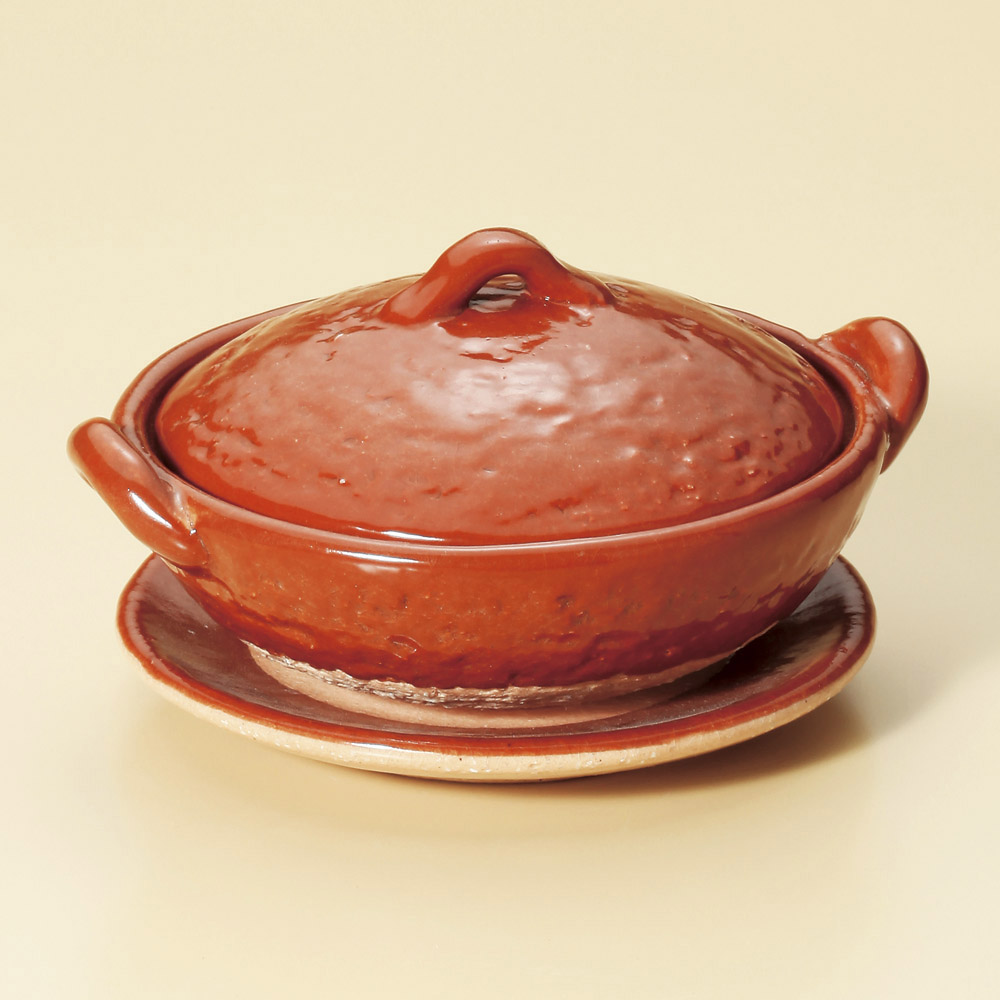 赤楽5号鍋(受皿付)(信楽焼) (直火)