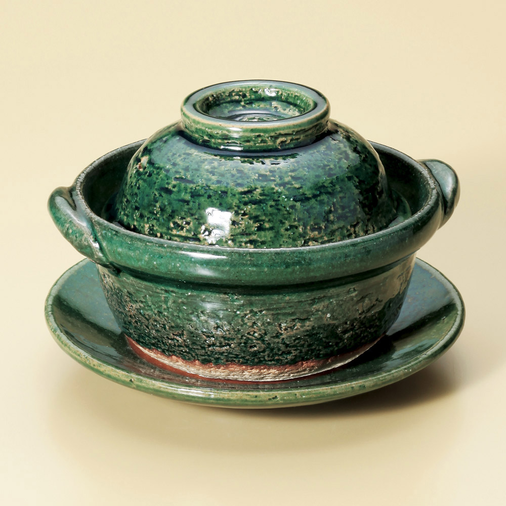 織部4.5号鍋(受皿付)(信楽焼) (直火)