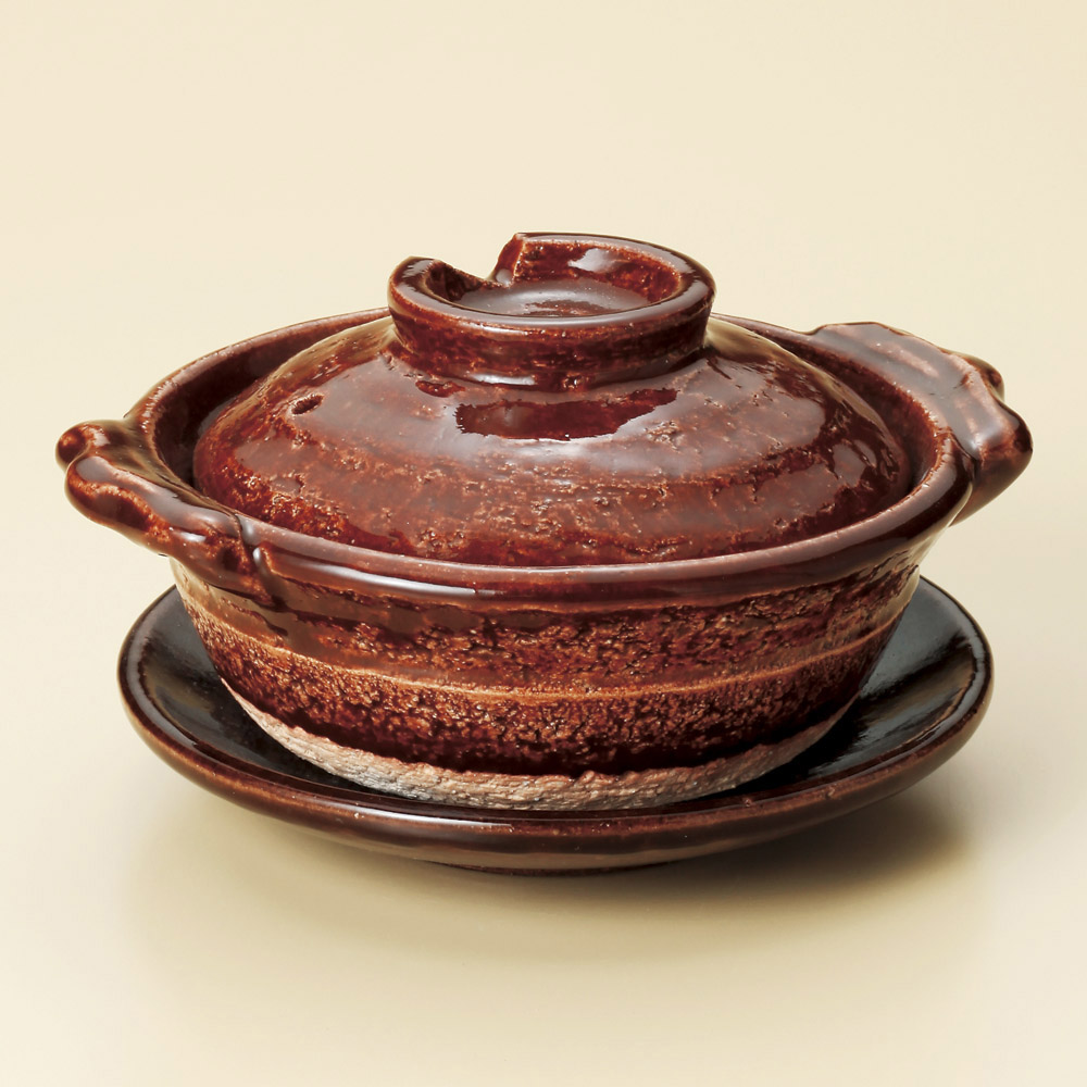 アメ釉(手造り)4.5号はも鍋(萬古焼) (直火,手造り)