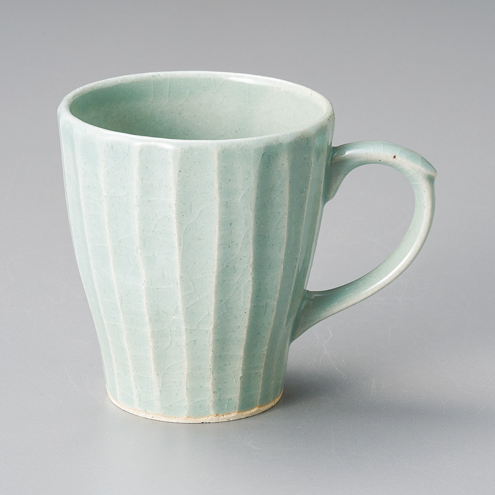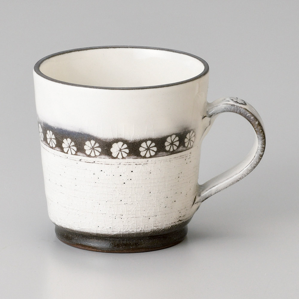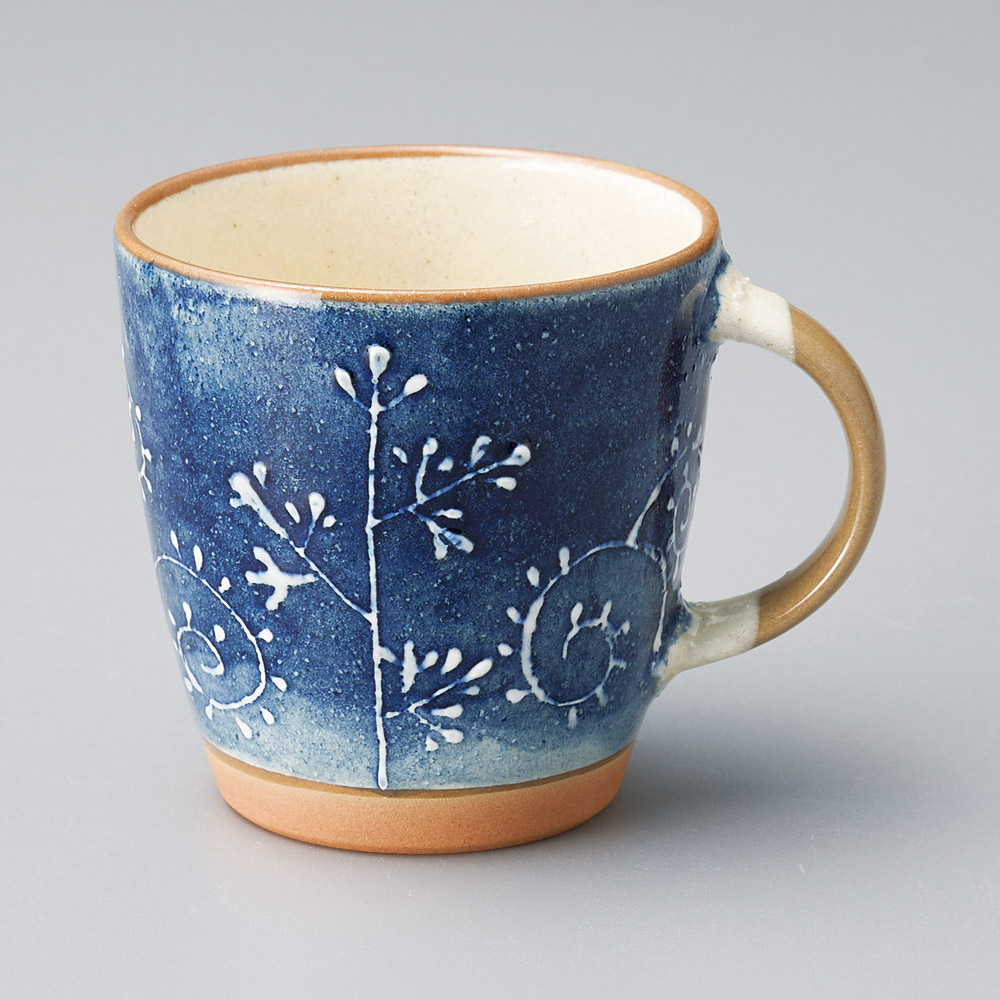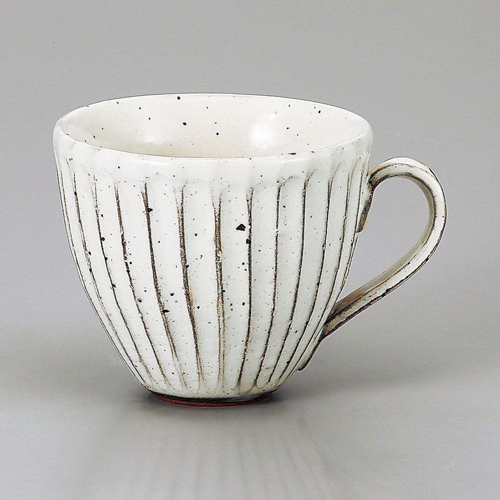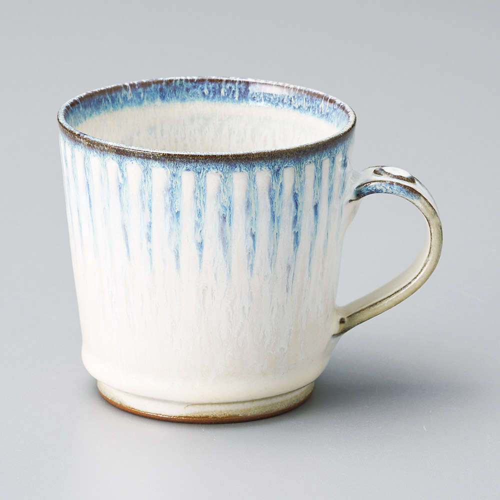 水墨彩白釉ねじり手マグカップ (土物,手造り)