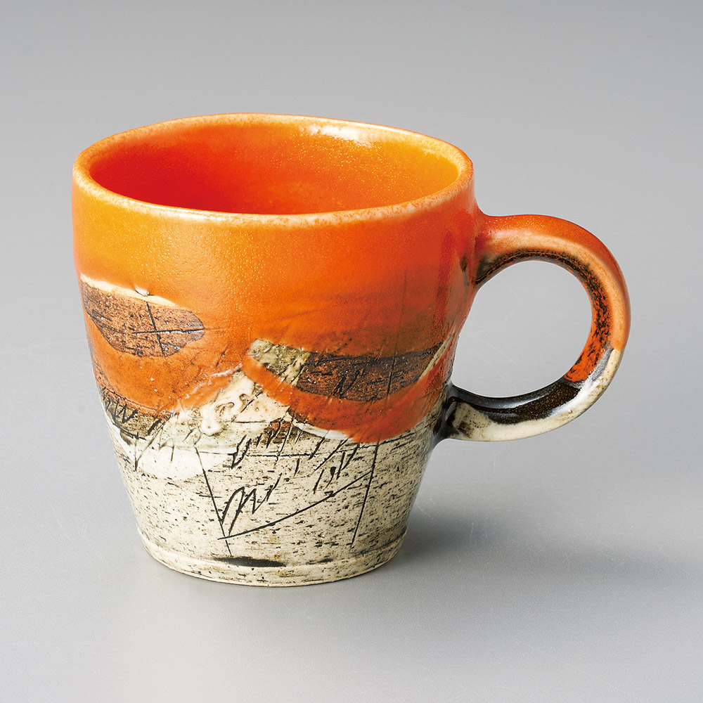 氷雪唐草 赤マグカップ(手描き) (土物)